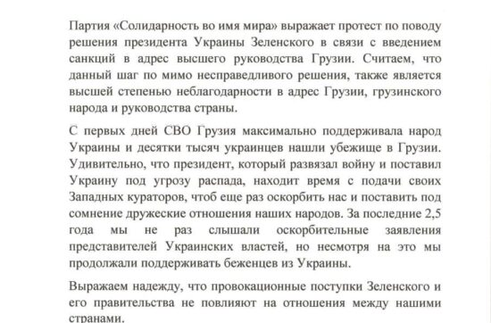 «Солидарность во имя Мира» выразила протест против санкций