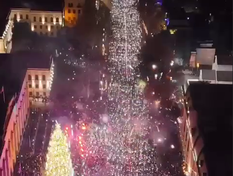 Тбилиси сегодня. Яркая светящееся полоса посередине проспекта Руставели – супра