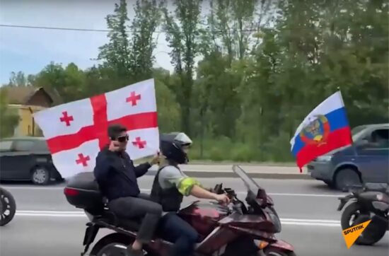 В Москве состоялся мотопробег, посвященный дню рождения байк-клуба «Ночные волки», где вместе с российскими флагами гордо развивался и флаг Грузии….